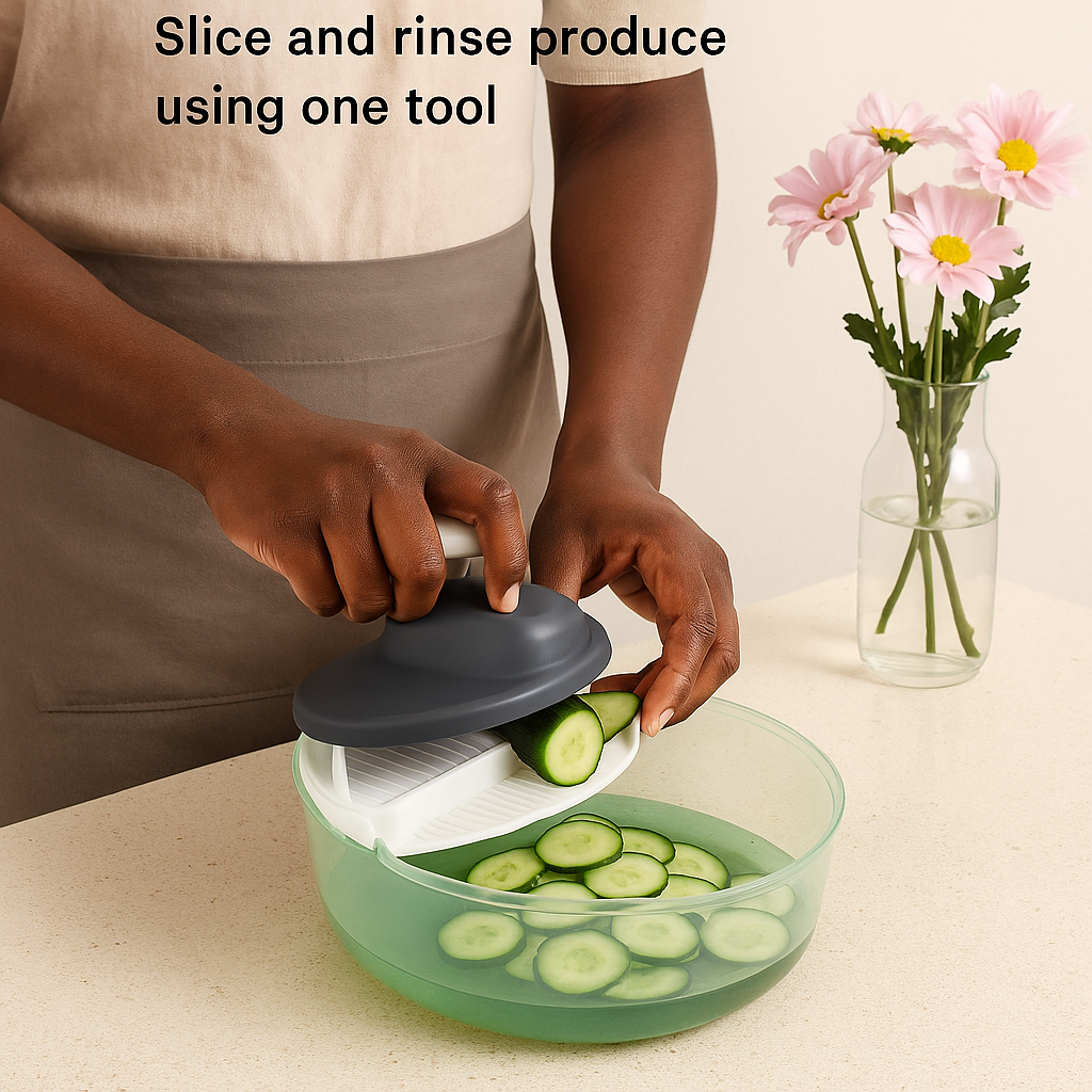 Easily slice and rinse vegetables in one motion using this multifunctional cutter. Designed for speed, safety, and convenience, it’s perfect for quick, fresh meal preparation every day.