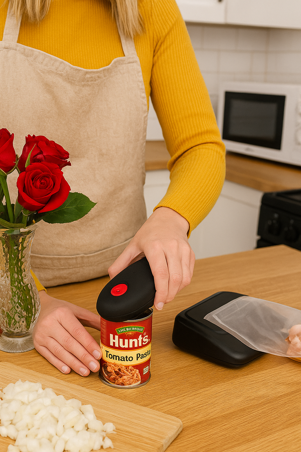 Effortlessly open cans like Hunt’s Tomato Paste with a single touch. Ideal for modern kitchens, this hands-free gadget ensures clean, safe cuts—perfect for quick, mess-free meal prep.