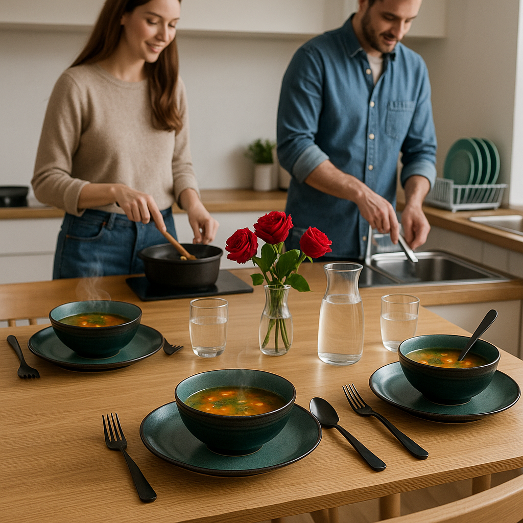 Enjoy your meals in elegance with this stoneware plate set. Perfect for hearty dishes like steak, paired with wine or water. Durable, stylish, and ideal for everyday or special dining.