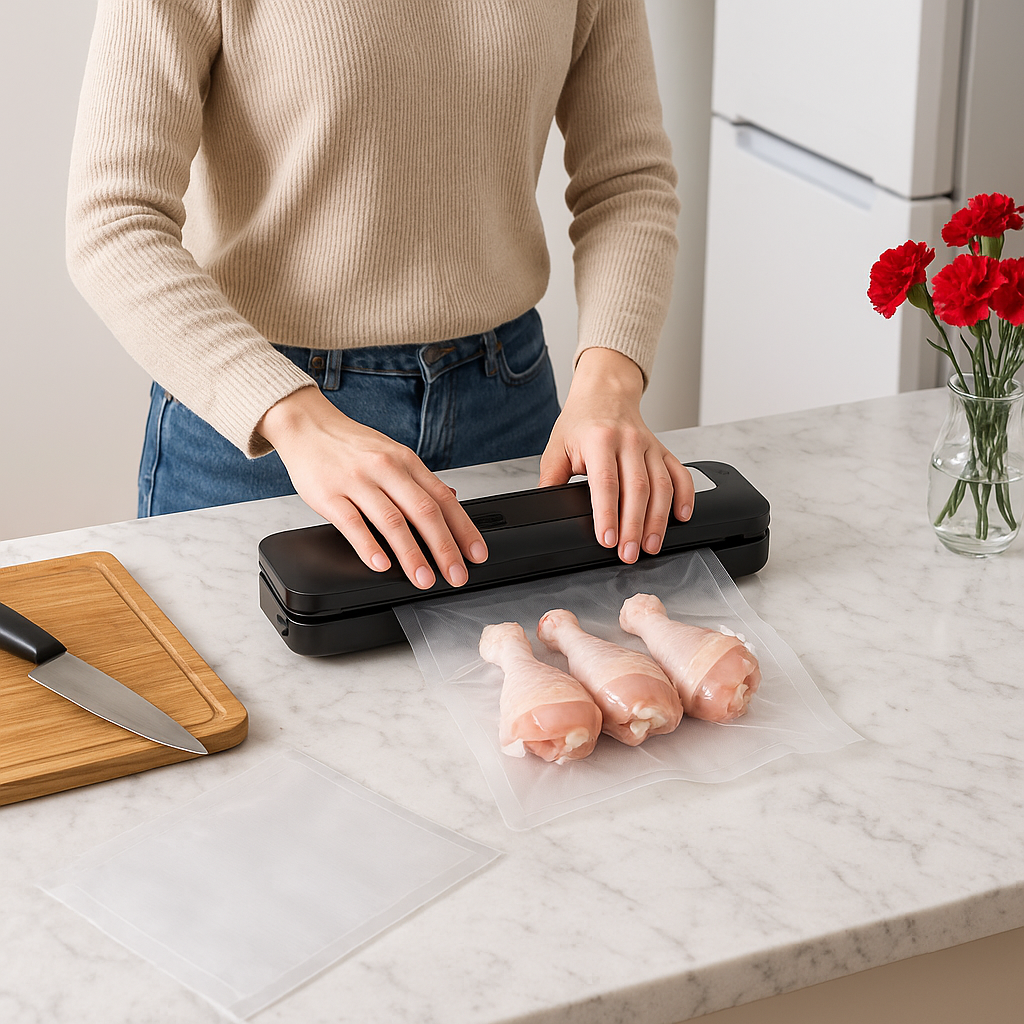 Vacuum-seal chicken drumsticks with confidence. This easy, mess-free solution locks in freshness, reduces waste, and keeps your freezer organized—perfect for meal prepping and smart food storage.