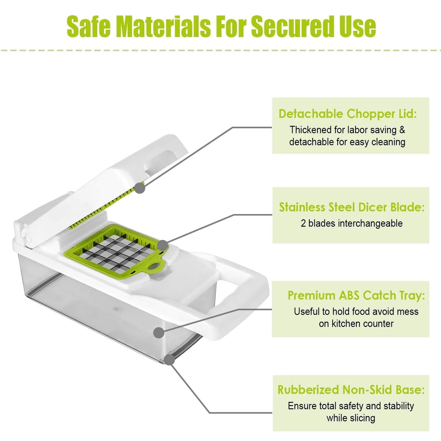 This 12-in-1 vegetable cutter offers sharp stainless blades for fast, safe slicing and dicing. Compact, dishwasher-safe, and easy to store, it simplifies meal prep while ensuring safety and convenience in any kitchen.
