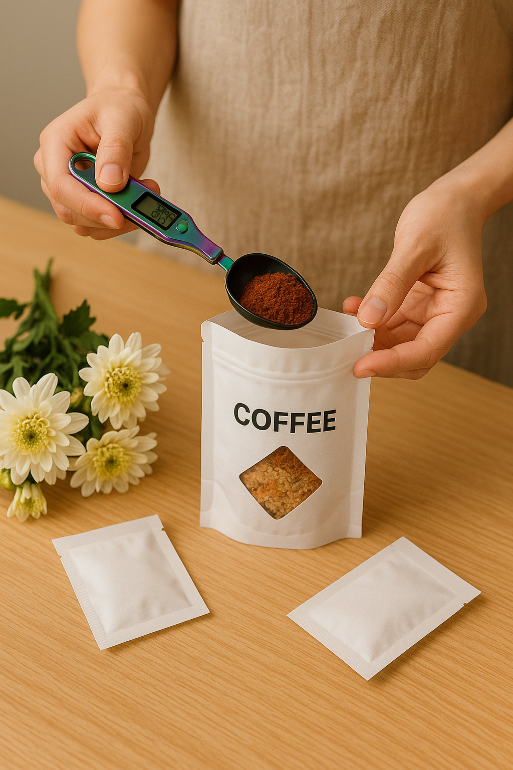 Scoop the perfect amount of coffee from your stash to resealable sachets. Preserve aroma, reduce mess, and create beautiful sample packs with absolute precision—one spoonful at a time.