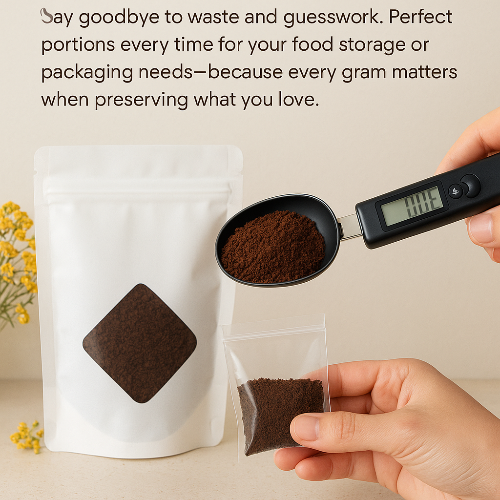 Say goodbye to waste and guesswork. Precision Spoon Kitchen Scale Perfect portions every time for your food storage or packaging needs—because every gram matters when preserving what you love.