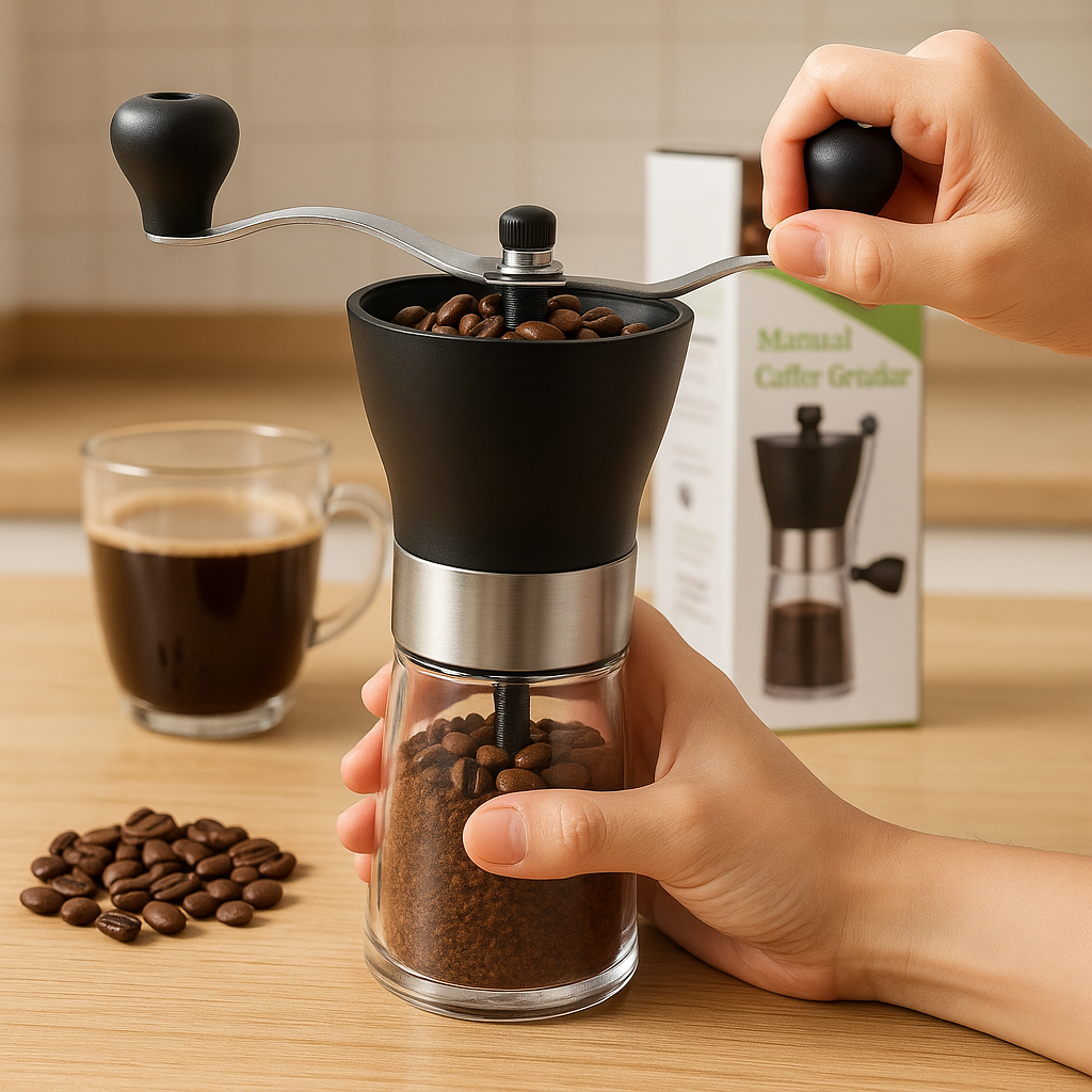 Our Premium Manual Coffee Grinder delivers precise, consistent grinds anytime, anywhere. Compact, durable, and portable—perfect for fresh coffee at home, while traveling, or outdoors.