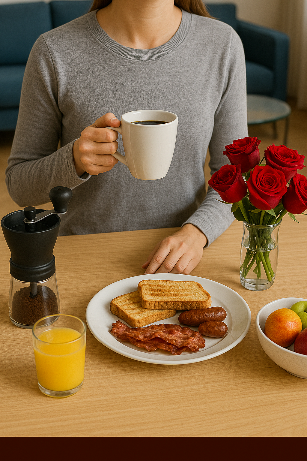 Start your day right with freshly ground coffee using this manual grinder. Enjoy a flavorful brew paired with a hearty breakfast, ensuring energy, freshness, and comfort every morning.