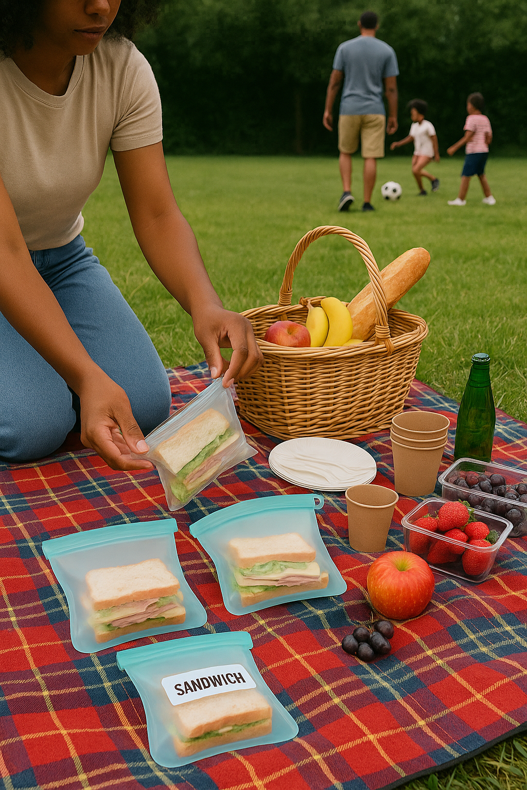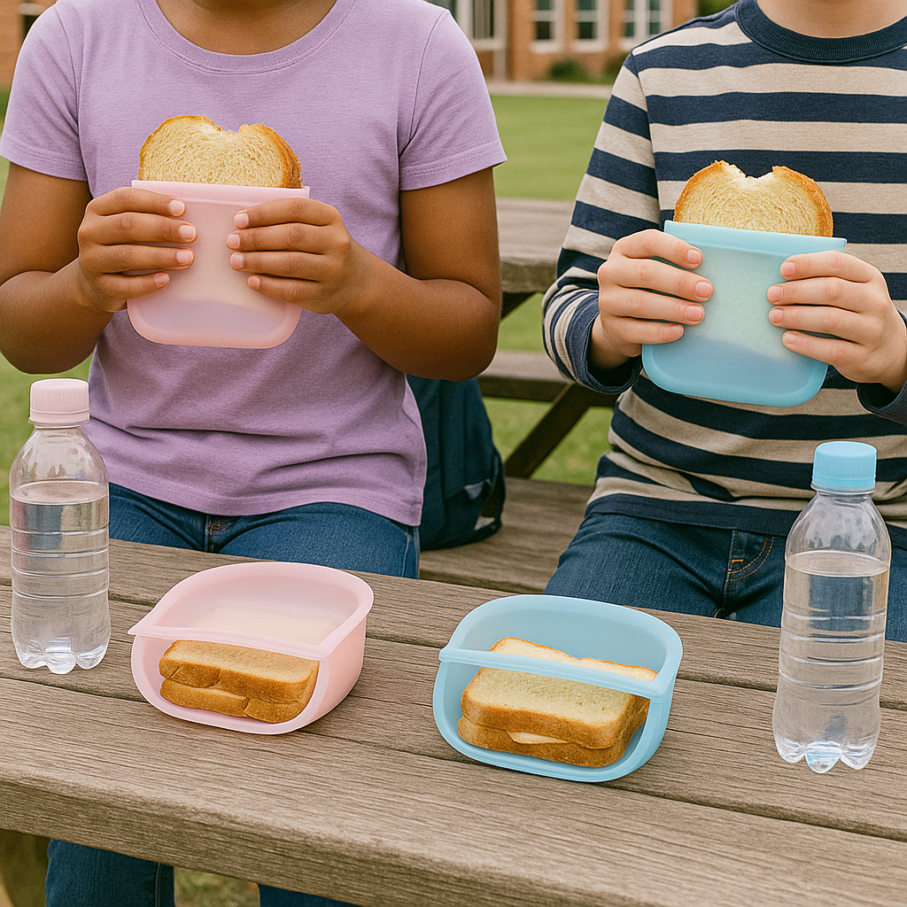 Perfect for picnics and outdoor meals, these reusable silicone bags keep sandwiches fresh and mess-free. Leak-resistant, easy to open, and eco-friendly — ideal for travel, storage, and snacking anywhere.