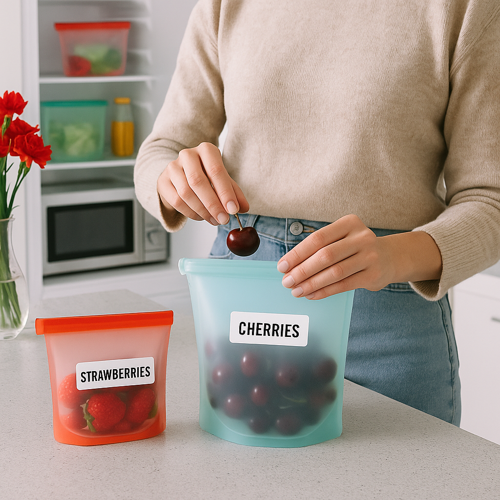 Effortlessly store fruits, veggies, or leftovers with FreshSeal Storage Bags. Leak-proof, reusable, and fridge-safe, these eco-friendly silicone bags keep food fresh, organized, and easy to access daily.