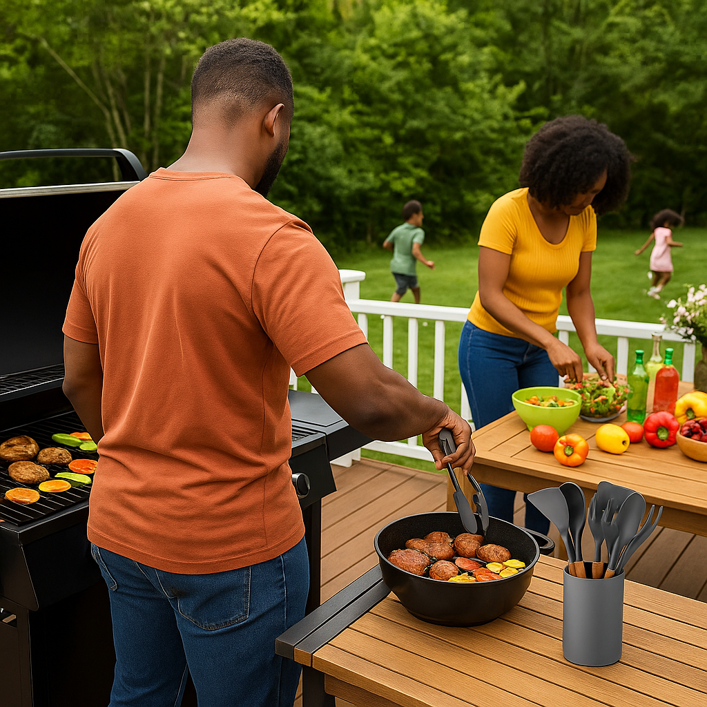 Enjoy outdoor cooking with this 11-piece silicone utensil set. Heat-resistant, durable, and non-stick safe—perfect for grilling meats, flipping veggies, and preparing fresh salads with ease.