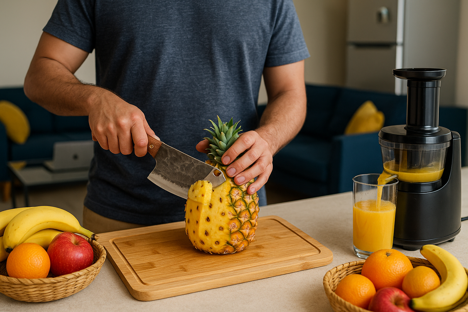 Effortlessly peel pineapples and thick-skinned fruits with this forged kitchen knife. Its sharp edge and solid grip offer precision, speed, and safety for all your fruit prep needs.